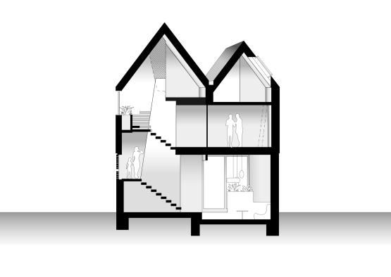 The three dominant traditional materials in the local neighbourhood are timber, metal and bricks. The home features a modern intepretation of these, a composition that allows it to sit well in the neighbourhood, while at the same time demonstrating its contemporary character. The charred black horizontal timber boards are a reflection of the traditional horizontal weatherboards.