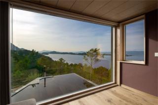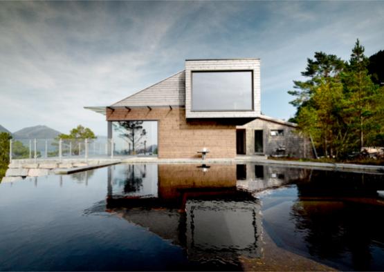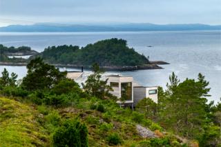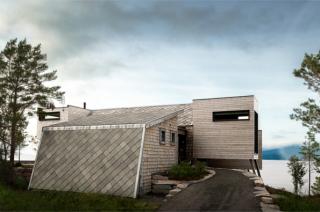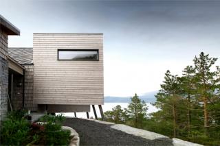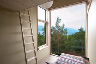 The major focus of the cabin is to take advantage of the stunning landscape that surrounds it, with rugged tree-coated bluffs stretching out to the north and south and, laid out beneath the heavily fenestrated western façade, a beautiful Norwegian fjord fills the panorama.