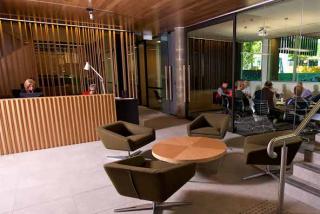 The minimalist design and use of glass in the partitions allow the timber doors to have a greater presence in the space than usual. Set against steel, glass, stone, concrete and sheet linings, timber finishes provide visual relief that other products cannot match, says Stephen Gunn, project architect, Cox Rayner.