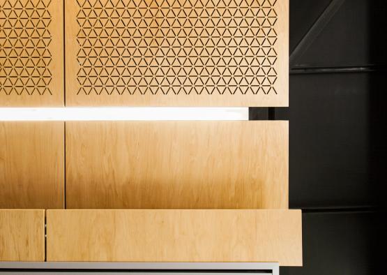 All primary timber structures, panelling and cabinetry utilised FSC certified timber. The glue used in the manufacturing of this product is a soy‐based, formaldehyde‐free product. Additionally, the plywood face coating is water‐based, non‐toxic, non‐combustible and non‐harsh odour emitting.