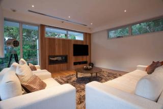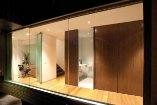 "The whole interior evolves around the timber veneer core. The doors were integrated into the veneer wall so that it appeared as a blank wall and the doors would open as a surprise element." Michael O'Sullivan, Vibe Design Group