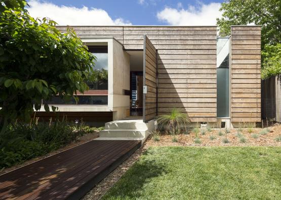 Repairs to the existing cottage utilised western red cedar, whilst the cladding and privacy screens of the addition were Australian cypress. The rough sawn cypress weatherboards exposed the rich heartwood, and 20mm gaps allowed ventilation through the structure.