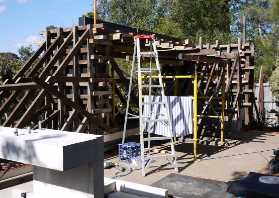 Solid Radiata pine and Radiata LVL’s were used as studs and bearers for the project. The recycled Douglas fir was used for the roof structure, and given its properties it dictated the roof span, resulting in design being influenced by material.