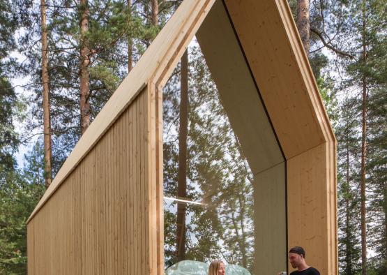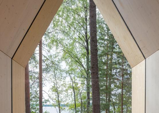 The exterior of Kynttilä was clad in larch timber, which mimics the look of the CLT. The building therefore appears to consist only of the structural members, creating the ultimate simplicity.
