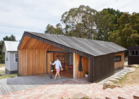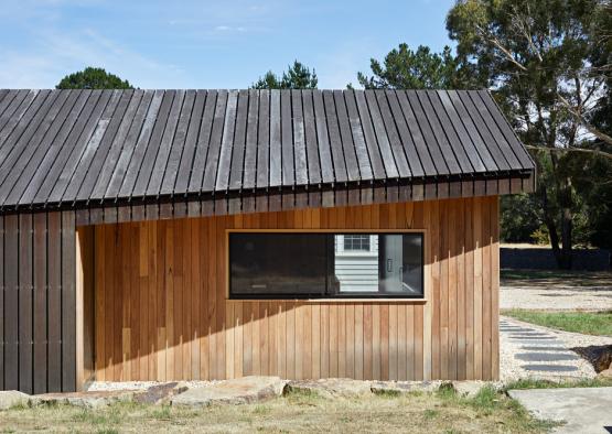 A black stain was applied to the spotted gum, providing durability and further material connection to the dilapidated shearing sheds. As the timber greys off naturally it will nestle further into the context, taking on an increased resemblance to the local history.