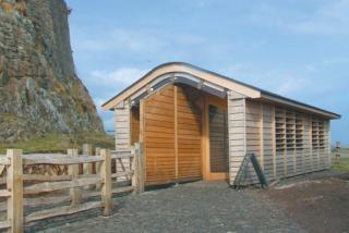 This timber-built ticket hut and assembly point for visitors entering the National Trust property on Holy Island adds a new dimension to a 16th century experience.