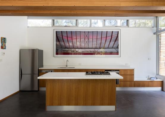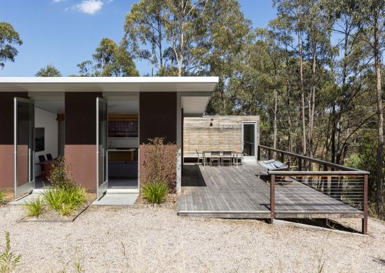 Minimal landscaping in deference to the bush setting and the use of recycled Blackbutt cladding also contributed to sustainability.
