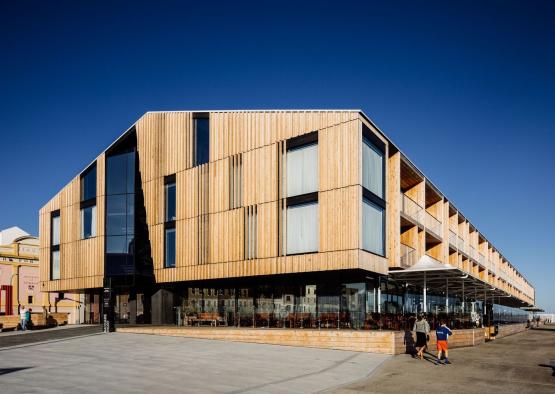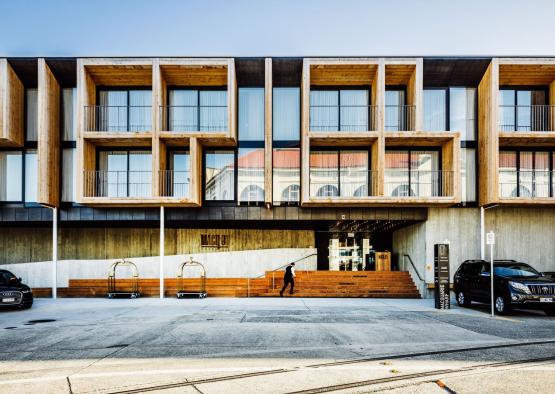 Mac 01 is a 114 suite hotel on Hobart’s historic wharf front, designed as a re-purposed waterfront warehouse.