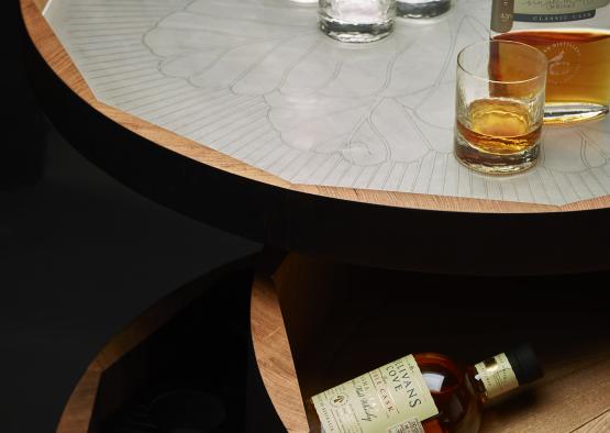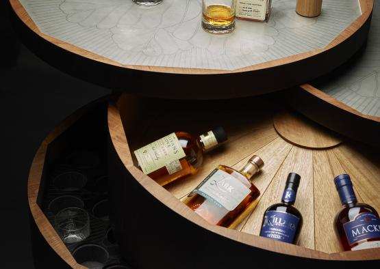 The furniture piece celebrates Tasmanian talent in timber, design, craft and whisky. Presented as an openable ‘barrel’, the adaptable form reconfigures to suit the size of those gathered to enjoy Tasmania’s world-class whiskies.