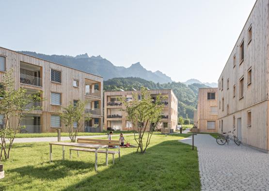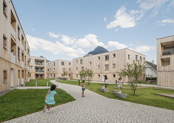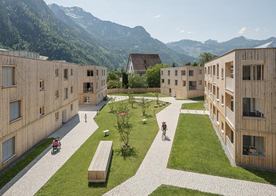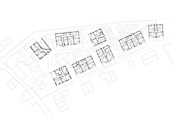 The eight structures that make up the housing estate are all designed to fit proportionally with the heritage building on the site- 'Zürcherhaus'. None of the structures have been built taller than the original building in order to maintain its prominence.