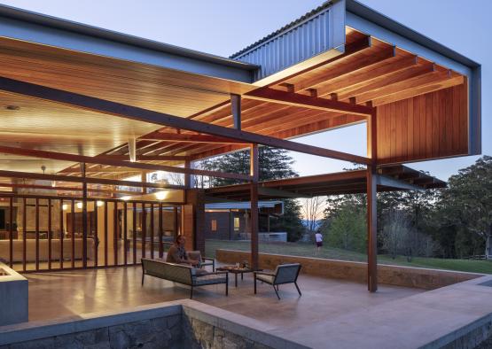 This owner-built farmhouse in Bellawongarah, on the tablelands above Kangaroo Valley, takes cues from traditional rural building materials and forms.