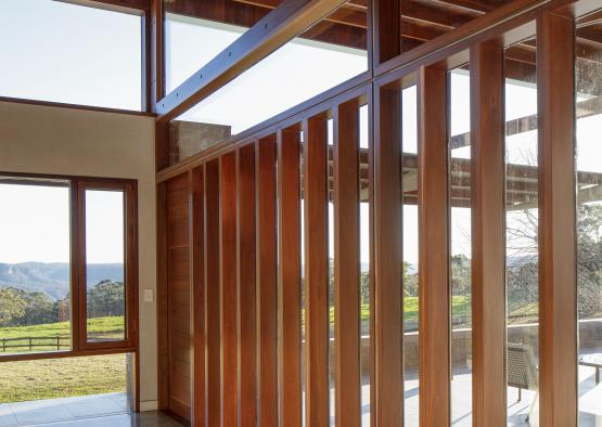 Timber was selected for the windows and doors for its durability, bushfire resistance, insulation values and material warmth. The selection of timber for detailed finished harmonises with the extensive use of timber throughout the project.