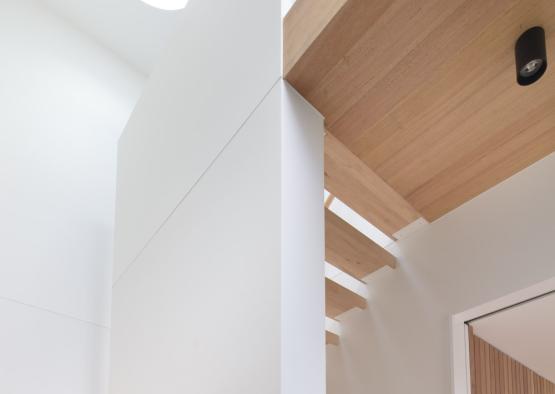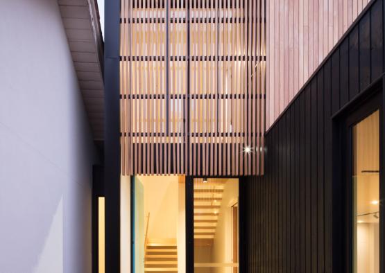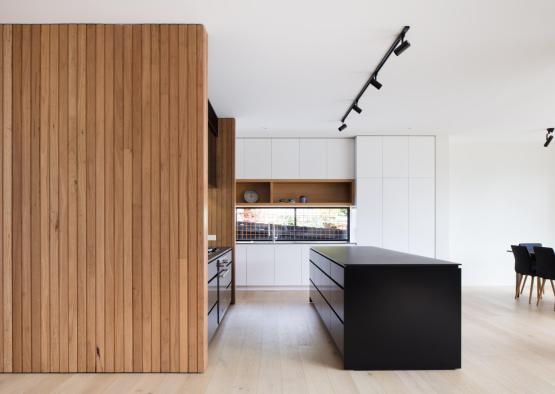 Tucked neatly behind a weatherboard house in Melbourne’s leafy north-east sits a two-storey modular extension that is bold yet refined and has transformed the way the clients live.