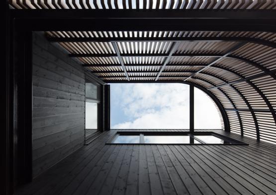 Sustainably-sourced blackbutt timber and Colorbond Diversaclad marry in harmony in this home. Yet it’s when the first floor timber form starts to curve and becomes a battened screen that gives way to the house’s personality. The screen is practical too – it provides additional sun shading and privacy ensuring there is no overlooking issues into the neighbour’s backyard. For the adults, the master suite upstairs offers a peaceful haven, cantilevering out to the garden.
