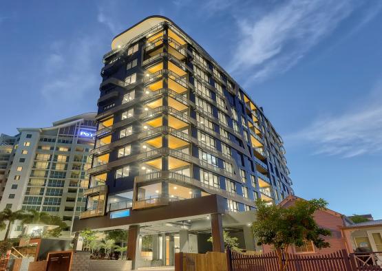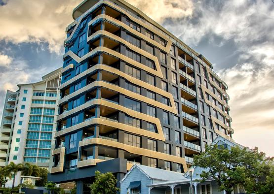 The surrounding context of the site was mainly heritage Queenslanders. The use of mass engineered timber for the superstructure allowed the architects to align the datums with the timber framed heritage Queenslander homes in front.