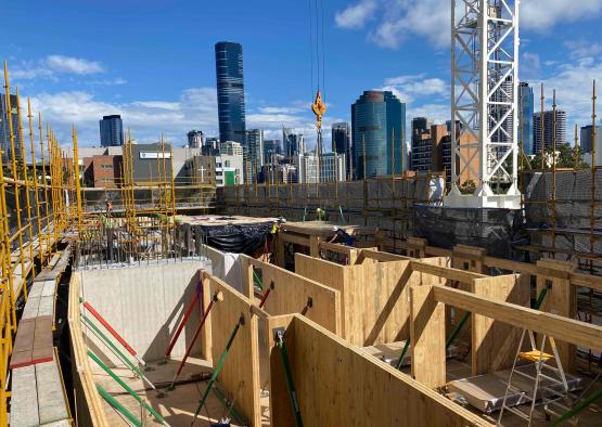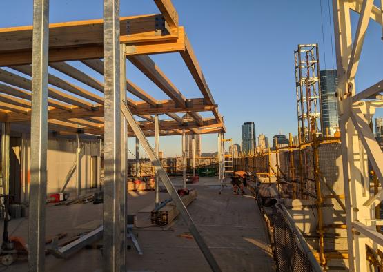 The initial, and most important reason timber was chosen, was due to its lighter weight than concrete. The project sits above an underground freeway tunnel, which meant the building had significant weight constraints in order to not impede on the structure below ground.