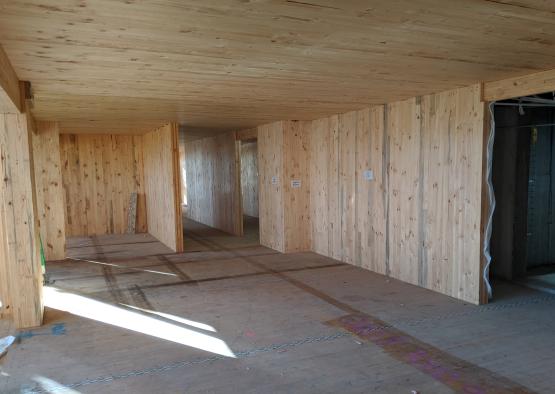 The project features a 1200m3 of CLT, and 83.5m3 of GLT, all of which locks in carbon dioxide, generating a positive impact on the environment.
