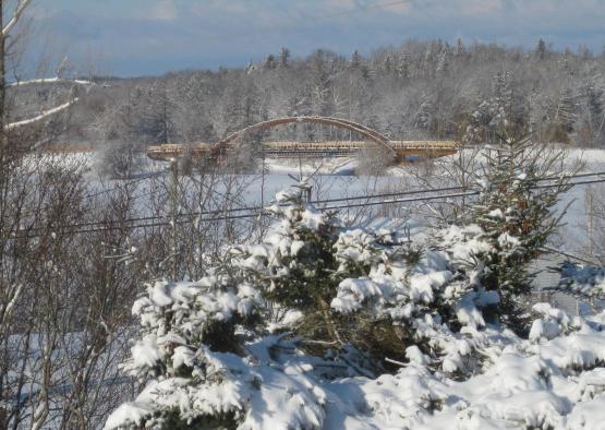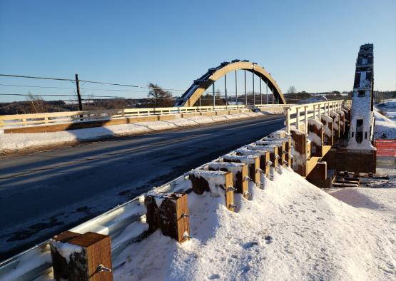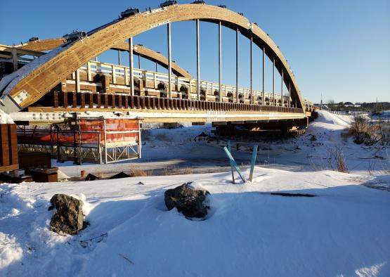 Nappan Marsh Bridge was designed by Wood Research and Development Australia (WRD – Designers and Engineers) for Nova Scotia's Transportation and Infrastructure Renewal Department, replacing an ageing steel structure with a similar arch profile- this time with innovative mass timber members.