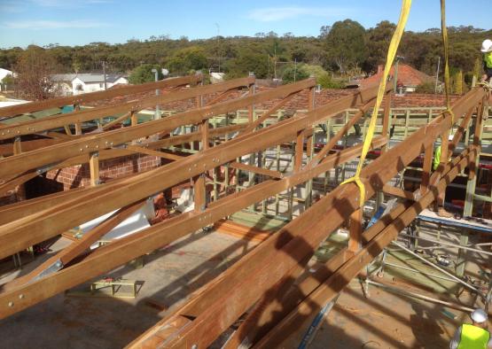 Columns, beams and trusses were constructed largely from recycled spotted gum timbers. The history of the timbers previous life can be seen in the structure, adding a depth of character to the space.