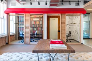 Yelp’s reception area is on the 9th floor, and to make it worthy of a trip up or down in the elevator, the designers created a ‘general store’ – a modern pop-up improvisation on the company’s perceived place in the new world of commercial entrepreneurship.