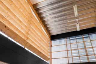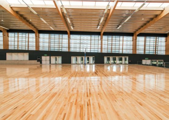 Architects Scott Carver were keen from the outset of the design process to create a building with a unique interior aesthetic. The large LVL portals were specified to create a grand internal scale akin to a Grecian temple. The repeating form of the structural portals were designed to create a ‘rhyme’ down the length of the court halls juxtaposed with the three-quarter rhyme of the façade’s supporting structure.