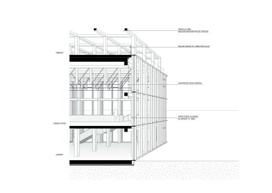 The building will also have a green roof top with soil and meadows to handle day water, contribute to biodiversity and improve the building’s insulation. Parts of the cultural center's roof top landscape is open to visitors so that they can enjoy nature in an urban environment.