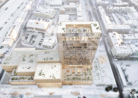 This winning proposal is a venue open for everyone. The design is contemporary with timeless qualities that pay homage to the local timber heritage. It will be the tallest wooden high-rise in the Nordic countries.