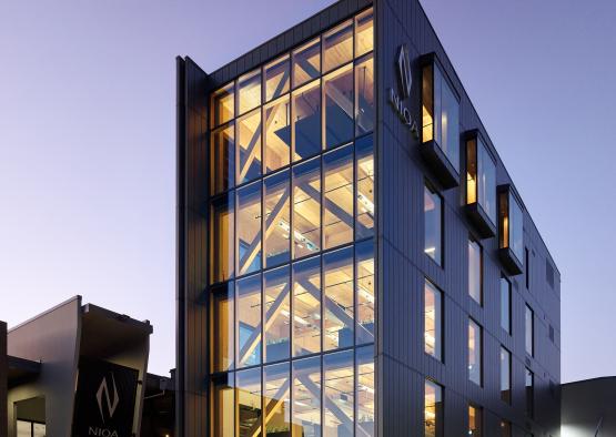 Three design objectives led to the early decision to embed mass timber in the NIOA project : sustainability, lessening construction impact on the existing facilities, and the beautiful biophilic properties of timber.