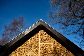 While the Log House is constructed from the same glass and steel as the other new building, the storage that it provides for the Culture House's firewood organises the split logs in an extremely arresting way. The densely packed wood is stacked showing the ring ends from the ground up to the roof, which from a distance creates the illusion of solid wood or a board of cork.