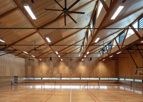 Nunawading Community Hub is a multi-functional community and sports precinct housed under an impressive timber truss roof, spanning 23 metres.