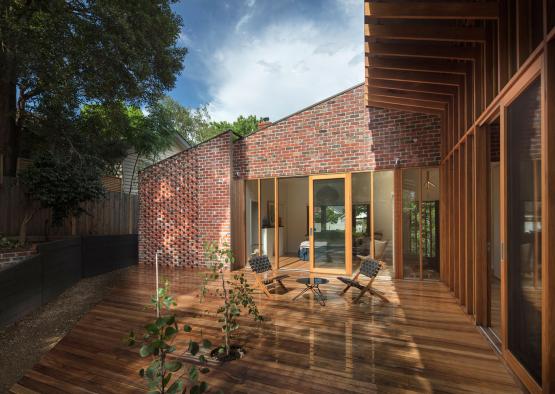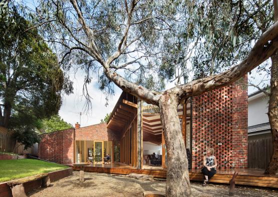This modest brick veneer home lacked character and individuality, as well as a relationship to the beautiful old-growth eucalypt on the site. Fiona Dunin at FMD Architects took two overarching design responses, referencing both the distinct original brickwork, and the rugged beauty of the native landscape that overgrew the property.