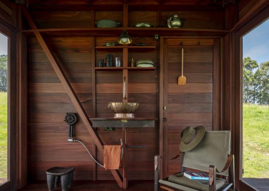 The project was conceived as a bare essentials approach to a country getaway. Located 500m from the main house on the site, it is accessible only by car, and provides a place to enjoy nature and simple living.