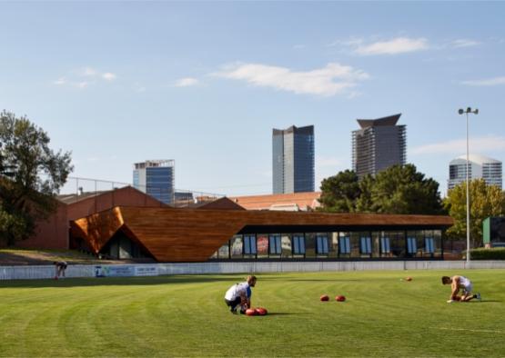Integrated within the building's core DNA is sustainability. k20 Architecture developed mechanisms to reduce energy consumption within the program of the building, and designed a structural system that could remain exposed forming the interior and exterior skin of the building. The building's bracing walls are framed in structural plywood and are left in a natural state, having only been sanded and stained black. With the extent of the glass required for optimal viewing of the game, k20 Architecture weighed in on balancing the costs of the glazing system, the specification of the a/c solution and the resulting energy consumption. The adopted method was to have the building naturally ventilated whilst working alongside Pilkington to develop a unique double glazed thermally broken glazing solution for the building.