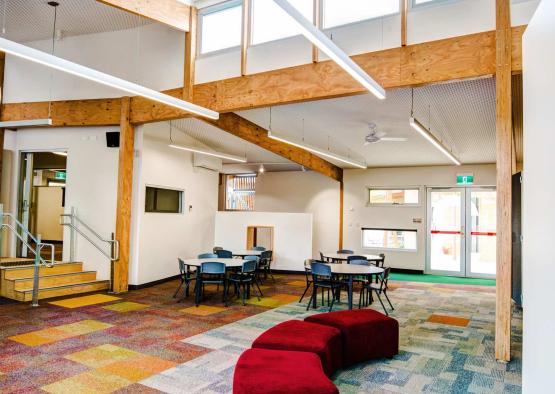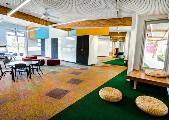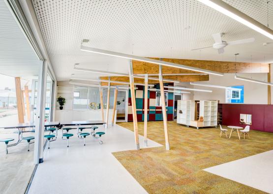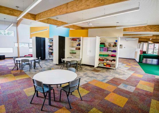 Engineered timber overcame the challenges of the traditional learning aesthetic, providing fresh, forest like classrooms where spaces could interlink and adapt as required. The holistic timber design provided a calming aesthetic, where elements such as exposed plantation timber structures, increased intrigue and creativity.