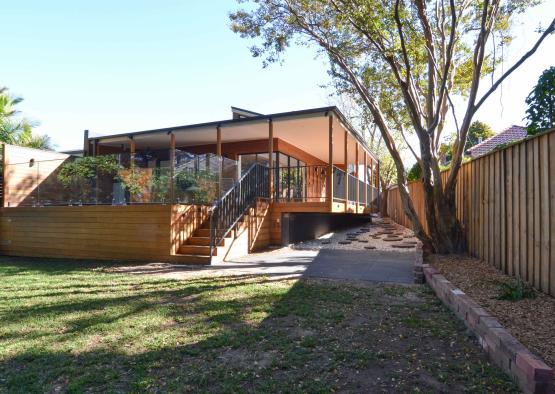 Timber Cladding was used for aesthetic, cultural, sustainable and economic reasons. The new rear addition was designed to create a seamless transition between the new and the old. The new large verandah was designed to float above the garden, with the pool acting as an anchor, the timber cladding wrapping around the base of the pool as well as the exterior walls facing the verandah.