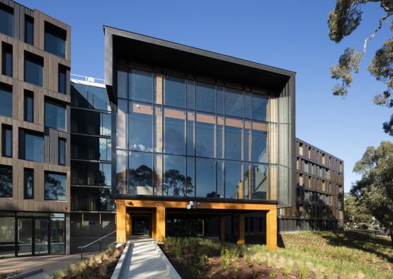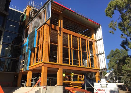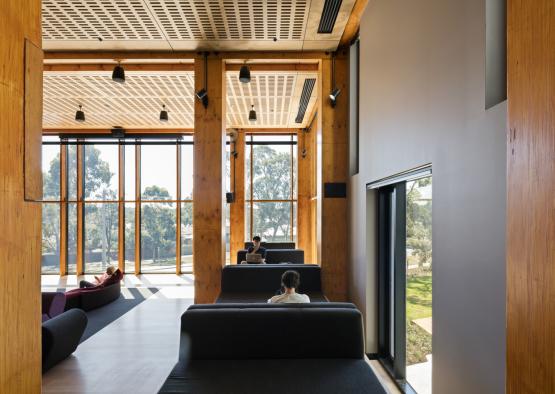 Engineered timber was included in the university’s development for many reasons, including the aesthetic appeal of our unique design, as well as the convenience of pre-fabrication and fast, economical installation. Engineered timber was integral to achieve the requirements of the design, with substantial column and beam sizes that would be near impossible to produce with raw timber pieces. Timber was also important for the project’s environmental conscience, with a combination of our timber frame with primarily timber interiors aligning with the client’s desire to incorporate natural materials such as wood into their project.