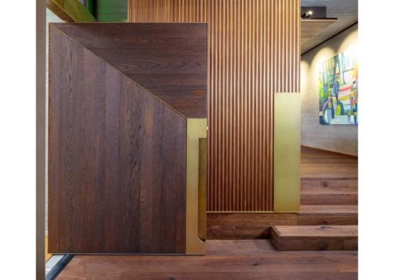 A thermally modified, sustainably harvested timber was provided by the supplier, ensuring low maintenance and maximum performance in its setting. The material was used mainly as flooring, with dark tones and wider sizes chosen to create a warmer aesthetic.