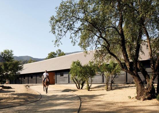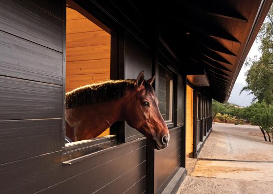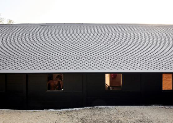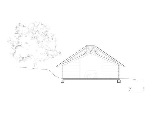 The simple gabled structure is designed to cater for the needs of the horses, providing a calm and and ambient space.