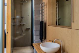 Accommodating the needs of two young, active sons – retaining a large lawn area was a must – as well as incorporating workshop and boat storage spaces into the scheme necessitated a high level of design innovation. For the owners this meant a lengthy negotiation with council, however, by challenging the established development controls, a large house – 380m² ­– including the aforementioned workshops and boat storage, has been packed onto a relatively small, 480m² site without any loss of amenity.