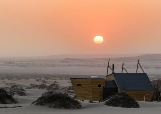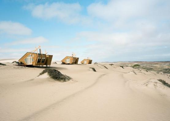 The Shipwreck Lodge is luxury 20-bed, Eco-tourism resort located in an isolated location in the midst of the wild, but beautifully desolate Skeleton Coast Desert in Namibia. The Lodges themselves sit close to the mouth of the Hoarusib River, which leads to the nearby Atlantic Ocean, surrounded by highly resilient salt-tolerant plants. The resulting view is a magical expanse of perpetually shifting sands and wild desert animals. The timber structures are designed to reflect the long history the coast has of treachorous shipwrecks.