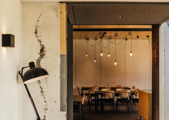 Inspiration for the interior takes reference from the immediate surrounding landscape, and the industrial heritage of the area. A rich palette of materials make up a warm and earthy space.