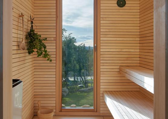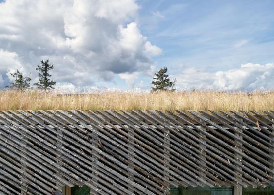 As well as cladding all surfaces in wood, the architects chose to also reference traditional Scandinavian sod roofs for a more natural feel. This was one of the few materials allowed for roofs by the local planning authority, and helps with heat retention in the winter and storm management in the summer. The green roof plantings gently sit over the top of the cladding, further embedding the structure in its surrounds.