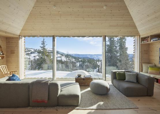 The cabin is located in Kvitfjell, Norway. The project marks the first start-to-finish project for architectural couple Casper and Lexie Mork-Ulnes, who work together as Mork-Ulnes Architects. The project is made even more personal for them by being designed for their family.