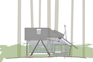The solution came from the architects' experiences backpacking where they spent the day outside and then at night tucked into a sleeping bag inside a tent. The design solution was a way to balance the differences between being exposed to the outdoors all day and seeking relief, warmth and security to sleep. It also has the added bonus of reducing the heating demands during the night.
