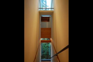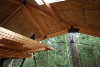 Finally the roof, an extremely light system of structurally insulated panels or SIP's (http://www.pbssips.com.) SIPS were plant fabricated offsite and quickly installed as a series of simple large panels. These panels are not only light but are highly thermally efficient due to the nature of their construction in which two layers of oriented strand board are glued to a dense internal layer of insulation that is acting both structurally and thermally.