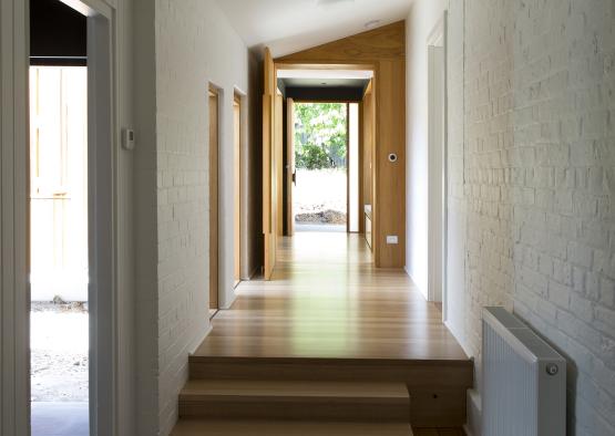 Tasmanian Oak plywood timber panels have been used as internal wall linings to the new Pavilion Addition provide a degree of visual and tactile warmth whilst contrasting with the white painted walls of the existing colonial period house.