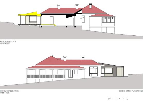 Sofia & Otto’s Playground is an environmentally sustainable modern Pavilion Addition to the existing white painted brick colonial house, which is contrasting in form, material and colour.