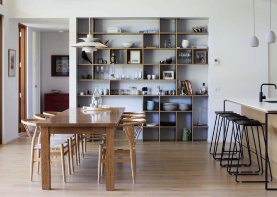 Somers Beach House nestles into a lush garden of natives and succulents designed by the dwellings owner. Presenting itself modestly to the main street, the true beauty lies at the rear of the home, accessible by a front door that poses as a side gate. Being the star facade of the house, the rear opens up to the environment, blending the classic Australian verandah with the private aspect of modern courtyard living.