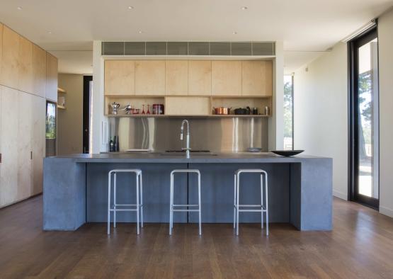 Situated at the top of a hill with views overlooking Merricks and Western Port Bay, the key design driver for this rural weekender was to use materials that respond to the natural features of the site.