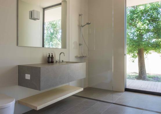 Timber is also applied in the more sculptural pieces – from the television unit to the bathroom vanities – creating a design consistency.